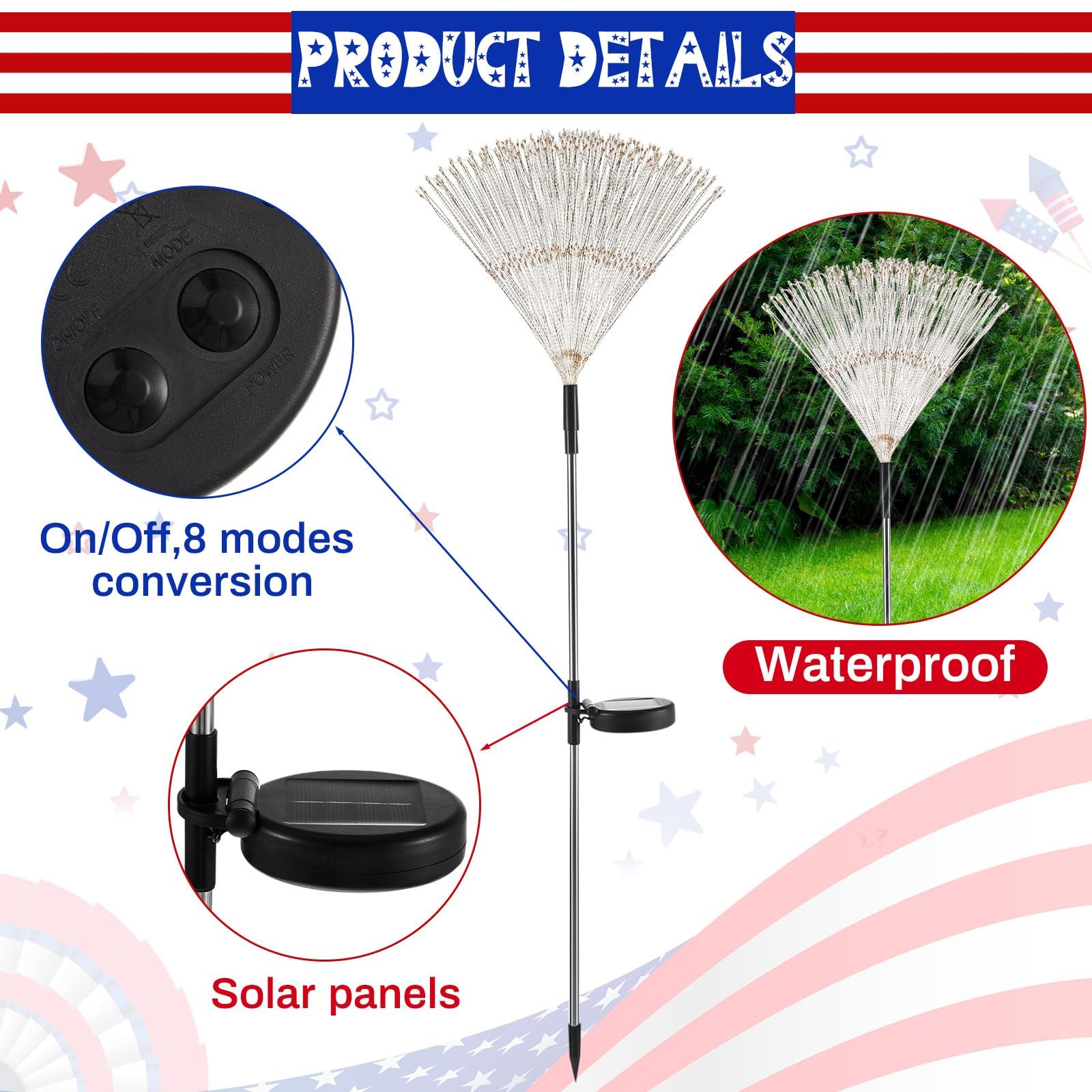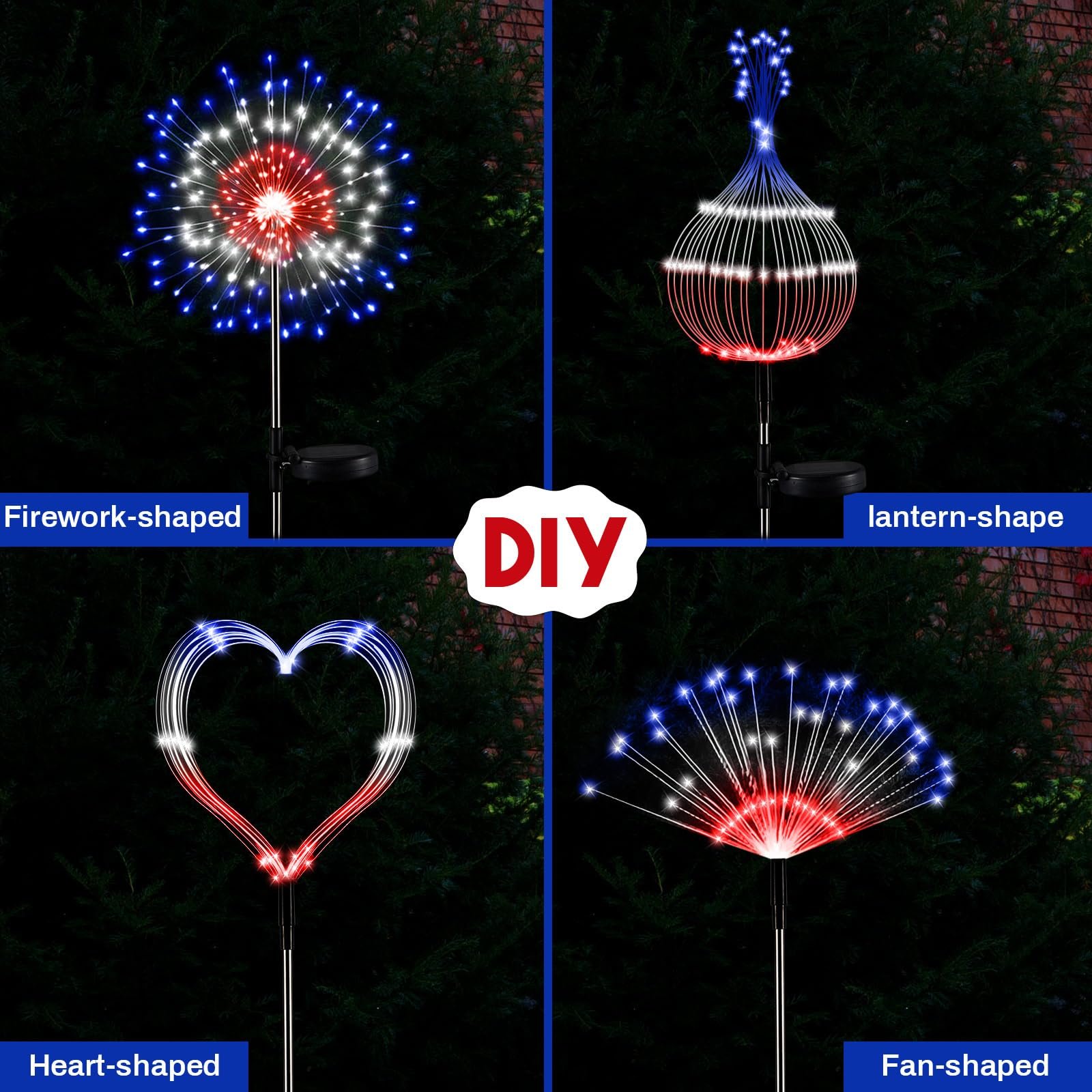✨ 120 LED DIY Firework Lights – Each light features 120 bright LEDs and flexible wire stems, so you can shape them into stunning fireworks, glowing lanterns, blooming flowers, and more! Whether you're lighting up your garden, enhancing your patio, or lining your walkway, these lights create a strong patriotic vibe.